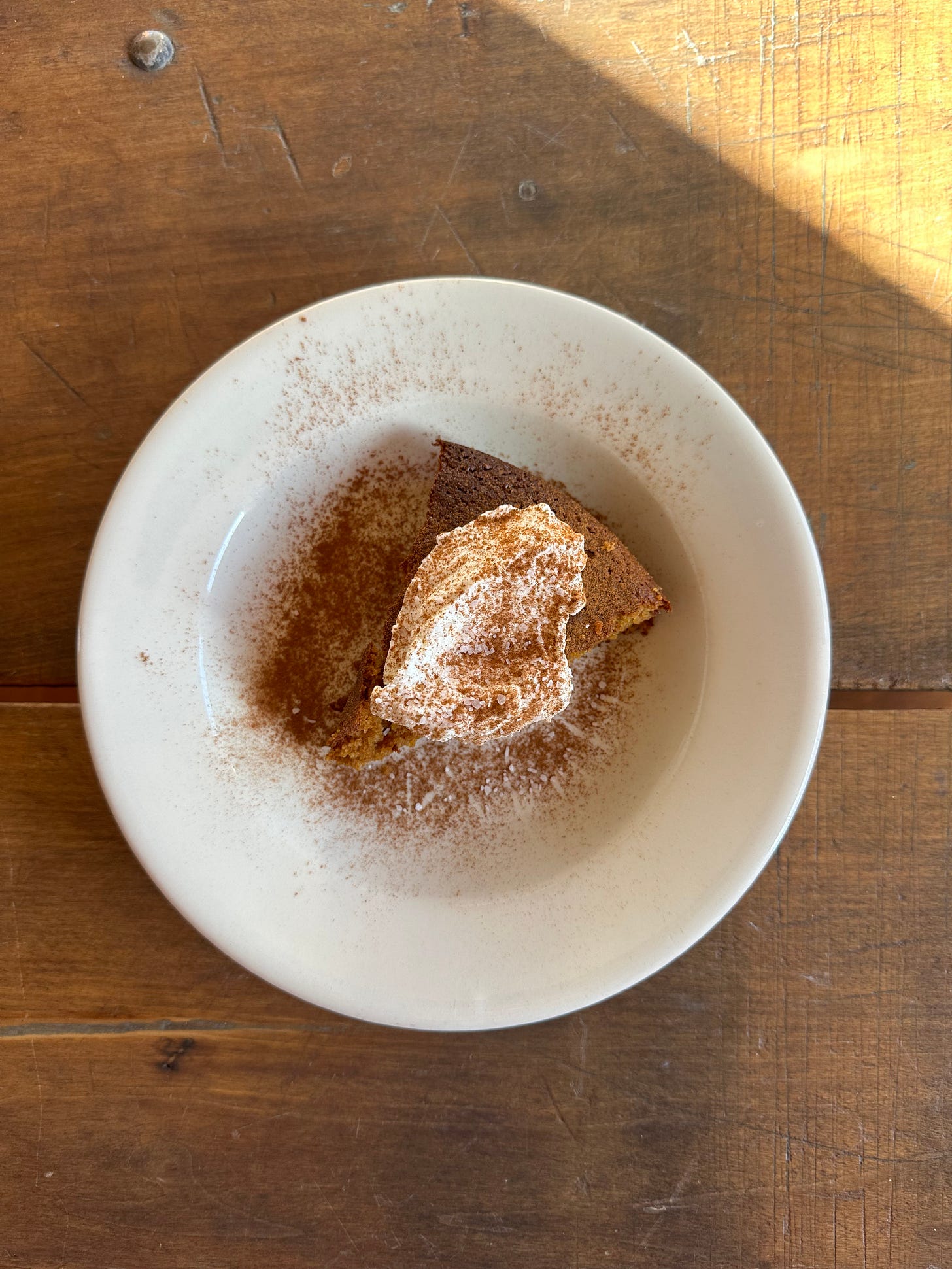 This cake is just a touch sweet, very simple, and comforting for when you want the mouthfeel and treat… but don’t really want cake. For breakfast underneath plain yogurt, or dessert with vanilla ice cream. Top with cinnamon and salt!